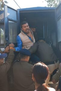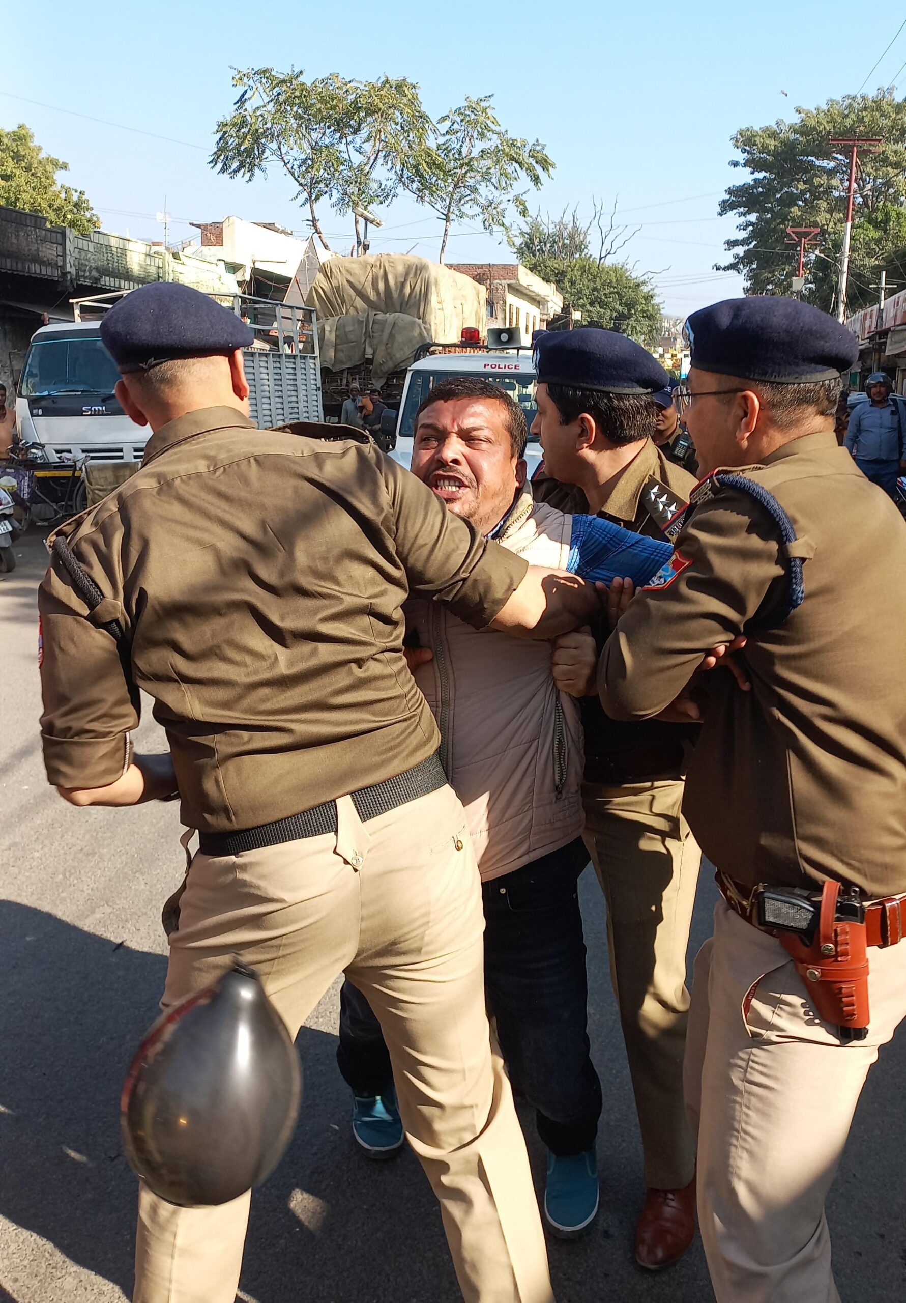 तिकोनिया चौराहे पर प्रदर्शन के दौरान पुलिस और प्रदर्शनकारियों के बीच जबरदस्त धक्का-मुक्की और बहस देखने को मिली। स्थिति नियंत्रित करने के लिए भारी पुलिस फोर्स तैनात की गई। विरोध के बीच पुलिस ने हेमन्त साहू समेत अन्य कार्यकर्ताओं को गिरफ्तार कर आरटीओ चौकी ले जाया गया।