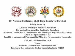 नई दिल्ली। अखिल भारतीय पंचायत परिषद के राष्ट्रीय महासचिव महेंद्र नागर ने बताया कि परिषद का दो दिवसीय 18वां राष्ट्रीय अधिवेशन आगामी 13 व 14 दिसंबर को कर्नाटक में आयोजित किया जाएगा। यह महत्त्वपूर्ण सम्मेलन महात्मा गांधी ग्रामीण विकास पंचायत राज्य विश्वविद्यालय, बड़ा मल्यावर (कर्नाटक) में संपन्न होगा।