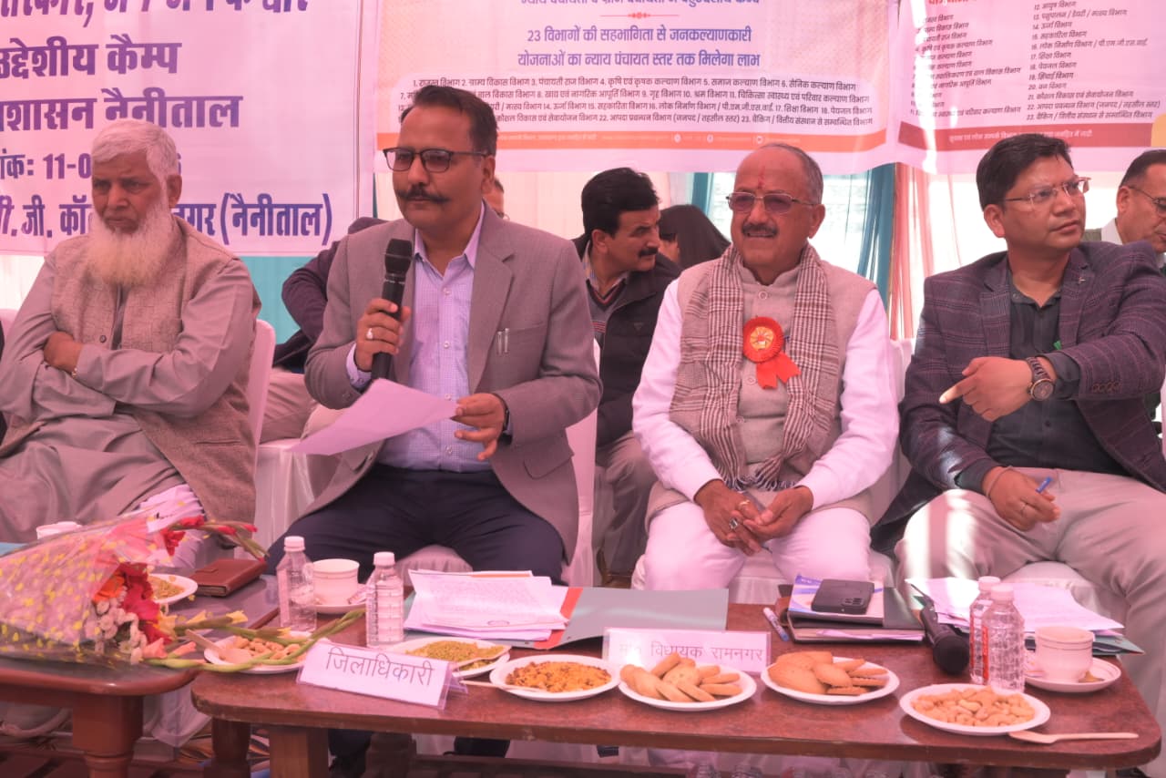 मा० मुख्यमंत्री पुष्कर सिंह धामी के निर्देशानुसार प्रदेश में आम जनमानस को केन्द्र सरकार एवं राज्य सरकार की जनकल्याणकारी योजनाओं का लाभ एक ही स्थान पर उपलब्ध कराने तथा जनसामान्य की समस्याओं के त्वरित एवं प्रभावी निराकरण के उद्देश्य से *जन-जन की सरकार, जन-जन के द्वार* अभियान के अंतर्गत जिलाधिकारी ललित मोहन रयाल की अध्यक्षता में बुधवार को उत्कृष्ट पीएनजी राजकीय स्नातकोत्तर महाविद्यालय रामनगर में बहुउद्देशीय शिविर का आयोजन किया गया।