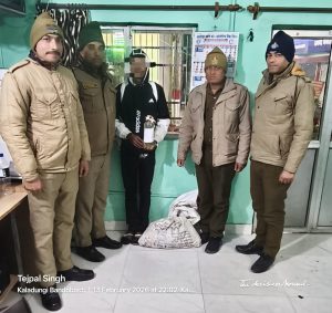 पुलिस अधीक्षक हल्द्वानी श्री मनोज कुमार कत्याल* के मार्गदर्शन क्षेत्राधिकारी रामनगर श्री सुमित पांडे* के पर्यवेक्षण तथा *प्रभारी निरीक्षक कालाढूंगी श्री अरुण कुमार सैनी* के नेतृत्व में पुलिस टीम द्वारा दिनांक 13.02.2026 को चैकिंग के दौरान निहाल नदी विदरामपुर चकलुवा क्षेत्र से *एक व्यक्ति को 57 पाउच अवैध कच्ची शराब के साथ गिरफ्तार किया गया।