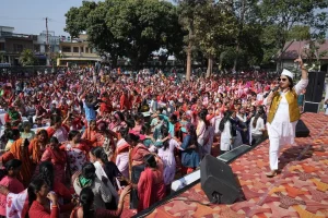कार्यक्रम में करीब 2500 महिलाओं की उत्साहपूर्ण भागीदारी ने पूरे मैदान को रंगों और उल्लास से भर दिया।