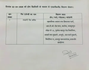 हल्द्वानी में इंडियन गैस की होम डिलीवरी को लेकर आ रही समस्याओं के बीच प्रशासन ने व्यवस्था सुधारने के लिए 2 अप्रैल 2026 का रोस्टर जारी कर दिया है। इस पहल का उद्देश्य उपभोक्ताओं को समय पर गैस उपलब्ध कराना और वितरण प्रक्रिया को सुचारु बनाना है।